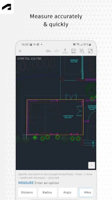 Arbeidsflyten din er optimalisert med Autodesk®️ AutoCAD® Web️s sømløse funksjonalitet. Ikke bare kan du jobbe offline og synkronisere endringene dine senere, men du kan også trygge tegningene dine i din Autodesk-konto eller foretrukne skytjenester som Autodesk Drive, Autodesk Docs, Microsoft OneDrive, Box, Dropbox eller Google Drive. Samarbeid med teammedlemmer i sanntid for å minimere feil, og bytt ut tunge blåkopi-planer på byggeplassen med digitale tegninger direkte på mobilen. Appen tilbyr omfattende funksjoner for 2D-visning, oppretting, redigering og deling, inkludert laghåndtering, innsetting av blokker, detaljerte måleinstrumenter for avstand, vinkel og areal, samt verktøy for kommentering og merking. Du kan til og med importere verdier fra Leica DISTO.