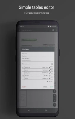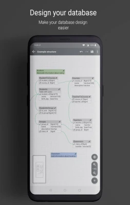 Dykk inn i en verden av uendelige muligheter hvor du enkelt kan konstruere tabeller, definere primær- og fremmednøkler, og strukturere kolonner nøyaktig slik du forestiller deg. Tilpass hvert element – juster parametere, velg farger for en tydeligere visualisering, og konfigurer en rekke andre innstillinger for å reflektere den nøyaktige logikken og estetikken du ønsker. Appen gir deg friheten til å bygge robuste og forståelige databasedesign, skreddersydd for ethvert prosjekt, stort som lite.