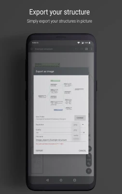 Når designet ditt er komplett, er du bare ett trykk unna å generere klar-til-bruk SQL-kode. Eliminér manuelle feil og spar verdifull tid ved å la appen håndtere koden, slik at du umiddelbart kan implementere ditt design i databasen. Trenger du å dele skjemaet med teamet ditt eller presentere det for kolleger? Eksportfunksjonen lar deg enkelt lagre ditt databaseoppsett som et bilde, klart til å sendes eller integreres i dokumentasjon. Dette gjør kommunikasjon og samarbeid enklere enn noensinne.