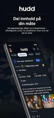 Opplev en dynamisk og lokal forankring med Hudd. Vår kalenderfunksjon er din nøkkel til å oppdage og delta i spennende arrangementer og aktiviteter i ditt nabolag – alt fra bursdager og felles treningsøkter til temafester og lokale dugnader. Få en oversikt over hva som skjer rundt deg og hvem som bor i nærheten, og bidra aktivt til ditt lokalsamfunn. Det beste av alt? Hudd er helt fri for forstyrrende annonser og tidsslukende algoritmer. Du ser kun det som er relevant for deg – innhold fra dine venner og ditt nabolag, designet for ekte engasjement, ikke meningsløs scrolling.