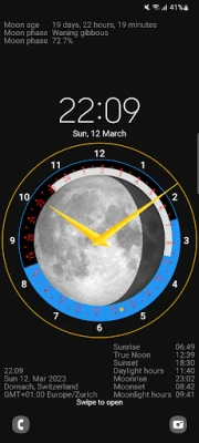 For fotografer er Sunclock en uvurderlig følgesvenn. Ved nøyaktig å beregne de ettertraktede gyldne og blå timene, samt presise skumringstidspunkter basert på din spesifikke posisjon og dato, sikrer Sunclock at du alltid kan fange motivene dine i det mest fordelaktige lyset. Men Sunclock strekker seg også mot stjernehimmelen. Den leverer nøyaktige tidspunkter for måneoppgang, månenedgang og detaljerte månefaser. Med evnen til å simulere himmelske hendelser, hjelper Sunclock deg med å planlegge og observere nattehimmelen med enestående presisjon, slik at du aldri går glipp av de mest spektakulære synene.