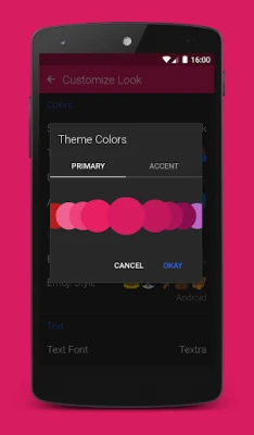 Skreddersy meldingsopplevelsen din ned til minste detalj med Textra. Velg blant over hundre visuelle temaer, juster farger for meldingsbobler og appikonet, og bytt mellom mørke, lyse eller automatiske nattmoduser. Du kan også velge mellom seks unike boblestiler for å matche din personlige smak. Tilpasningen stopper ikke der: du kan tilpasse temaer, boblefarger, signaturer og varslingsinnstillinger – inkludert ikonfarge, LED-lys, lyd, vibrasjon, personvern og påminnelser – individuelt for HVER ENKELT KONTAKT. Appen er fullpakket med praktiske funksjoner som planlagt sending, mulighet til å stoppe meldinger under sending, raskt svar via popup, effektiv håndtering av MMS-gruppemeldinger, raske taleopptak, og automatisk komprimering av bilder og videoer. Legg til et personlig preg med tilgang til over 2000 emojier, inkludert varianter med ulike hudfarger, i stiler fra Android, Twitter, Emoji One og iOS.